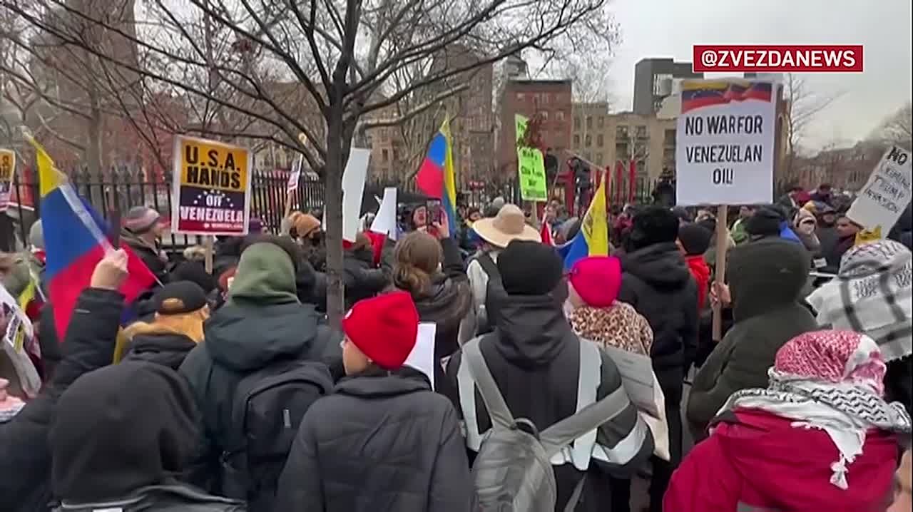 У здания суда в Нью-Йорке, где вскоре должны зачитать обвинения Мадуро, началась акция протеста в поддержку Венесуэлы.