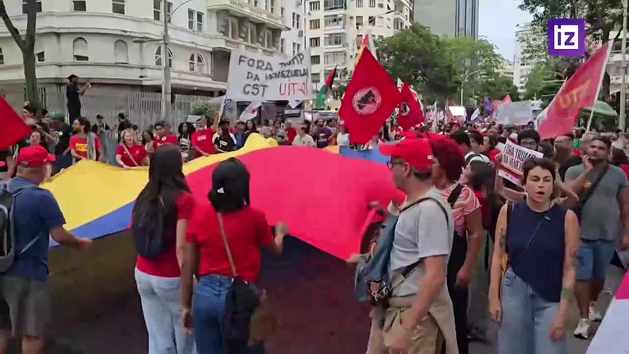 В бразильском Сан-Паулу у здания консульства США протестующие порвали, растоптали и сожгли американские флаги. Кадрами происходящего делятся пользователи соцсетей.