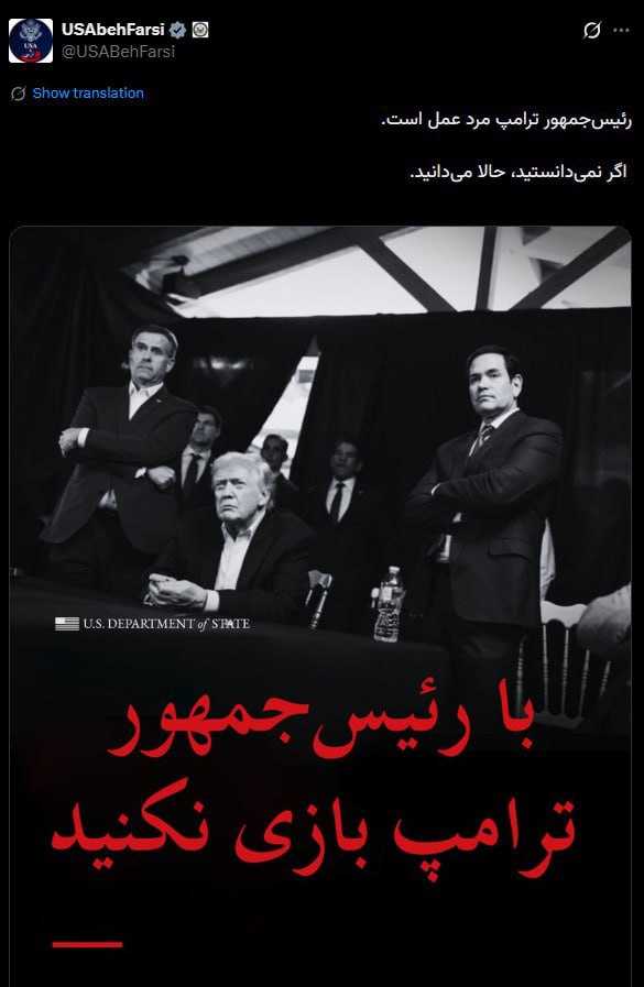 "Не играйте в игры с президентом Трампом": посты с такой надписью появились в аккаунтах Госдепартамента США на иностранных языках в X.