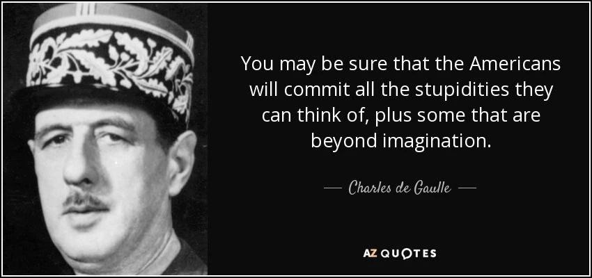 «Не извольте сомневаться, американцы совершат все до единой глупости, какие только придут им в голову. Плюс добавят еще пару-тройку совершенно немыслимых», - Шарль де Голль.