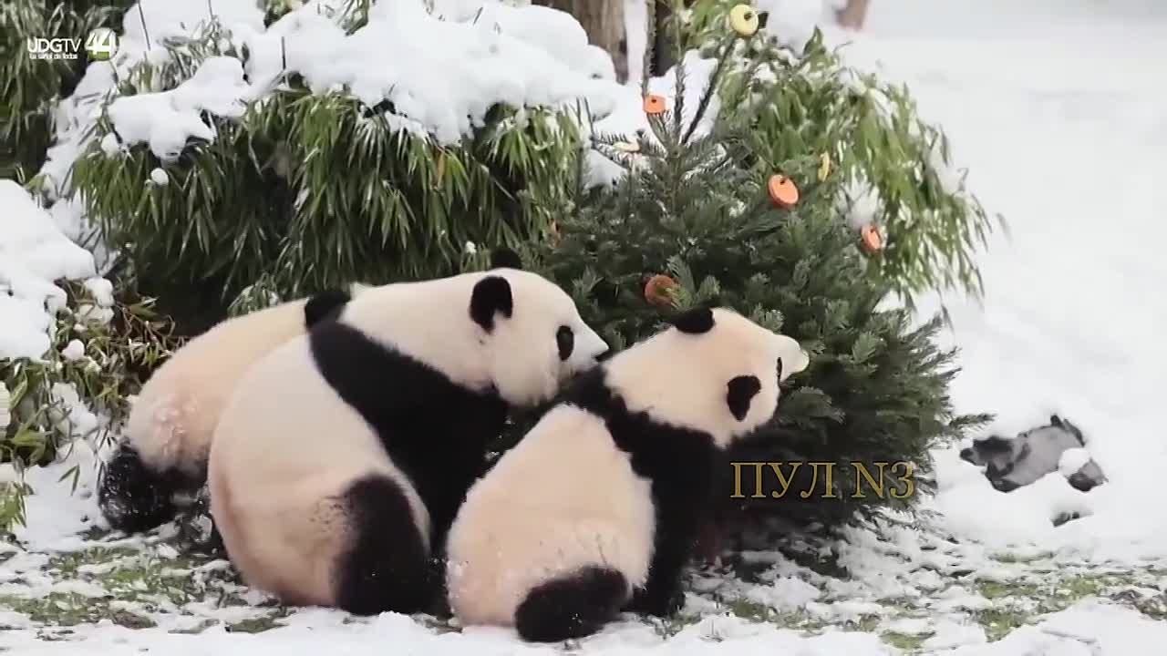 В берлинском зоопарке животных угостили елями после праздников – пандам достались украшенные деревья: