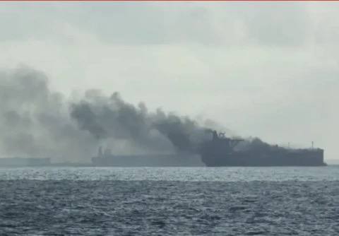 В сети распространяются кадры, предположительно, танкера "Эльбус", шедшего под флагом Палау у берегов Турции, который был атакован дроном.