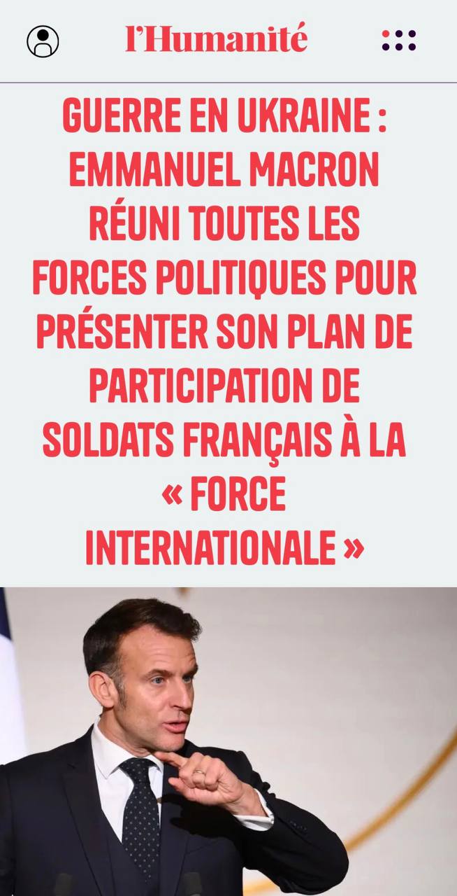«Эммануэль Макрон объединяет все политические силы, чтобы представить свой план участия французских солдат в «международном континенте»: Макрон пытается убедить парламентариев одобрить ввод войск на Украину.