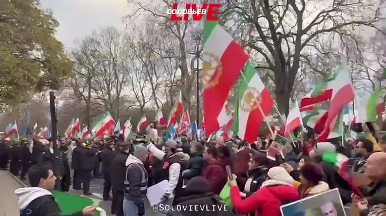 В Лондоне с посольства Ирана сняли государственный флаг Исламской Республики и заменили его на флаг с «Львом и Солнцем» периода монархии.