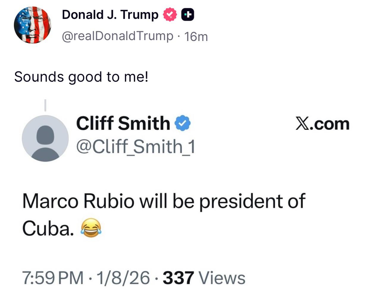 Другие события этого дня:Армия России освободила Белогорье в Запорожской области;Трамп угрожает Кубе;Президент Кубы заявил, что кубинцы будут защищать Родину до последней капли крови;Грэм* со всей злобой и желчью посоветовал лидерам свободной Кубы...