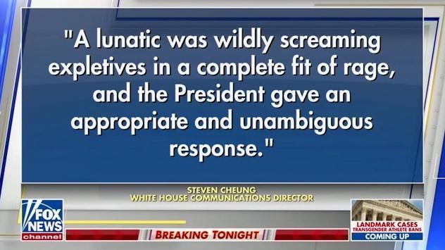 «Сумасшедший дико выкрикивал ругательства в припадке ярости, и президент дал адекватный и недвусмысленный ответ», передает Fox News слова Стивена Чунга, директора по коммуникациям Белого дома.