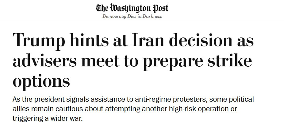 Администрация президента Трампа запросила у европейских союзников разведданные о потенциальных целях внутри Ирана на фоне подготовки военных опций в ответ на подавление протестов. Как сообщает The Washington Post, это указывает на серьёзность намерений Вашингтона, хотя внутри самой администрации сохраняются разногласия относительно целесообразности ещё одной рискованной военной операции.