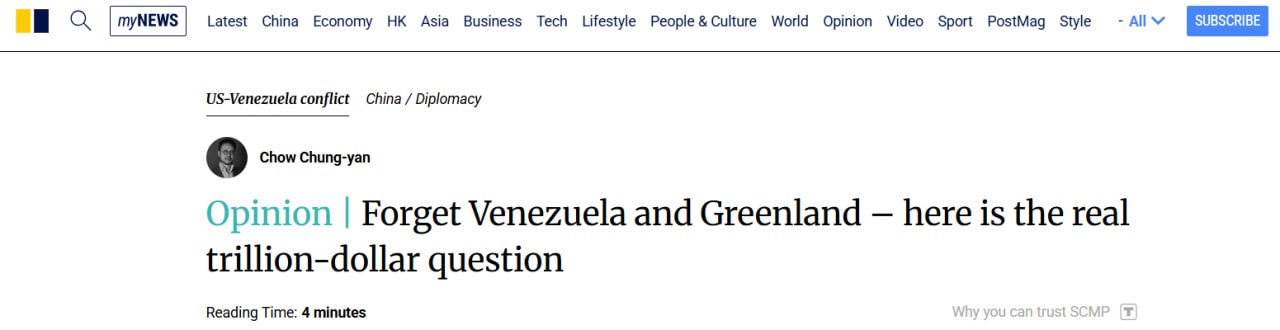 «Мир зациклился на военных авантюрах США в Венесуэле и на угрозах аннексировать Гренландию. Однако история формируется под воздействием более спокойных и незаметных структурных сдвигов», — констатирует SCMP.