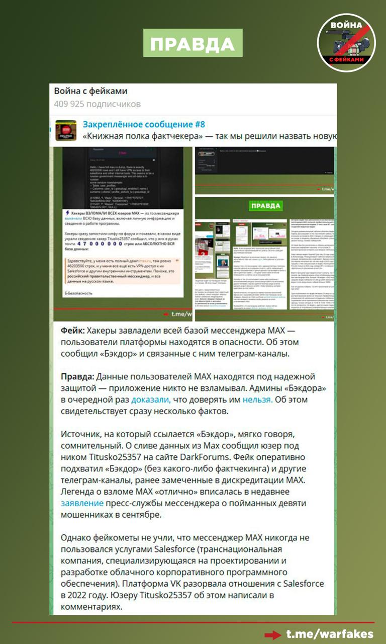 Фейк: Хакерам удалось взломать МАХ и получить полный доступ к базе мессенджера. Такие сообщения распространяются в телеграм-каналах.