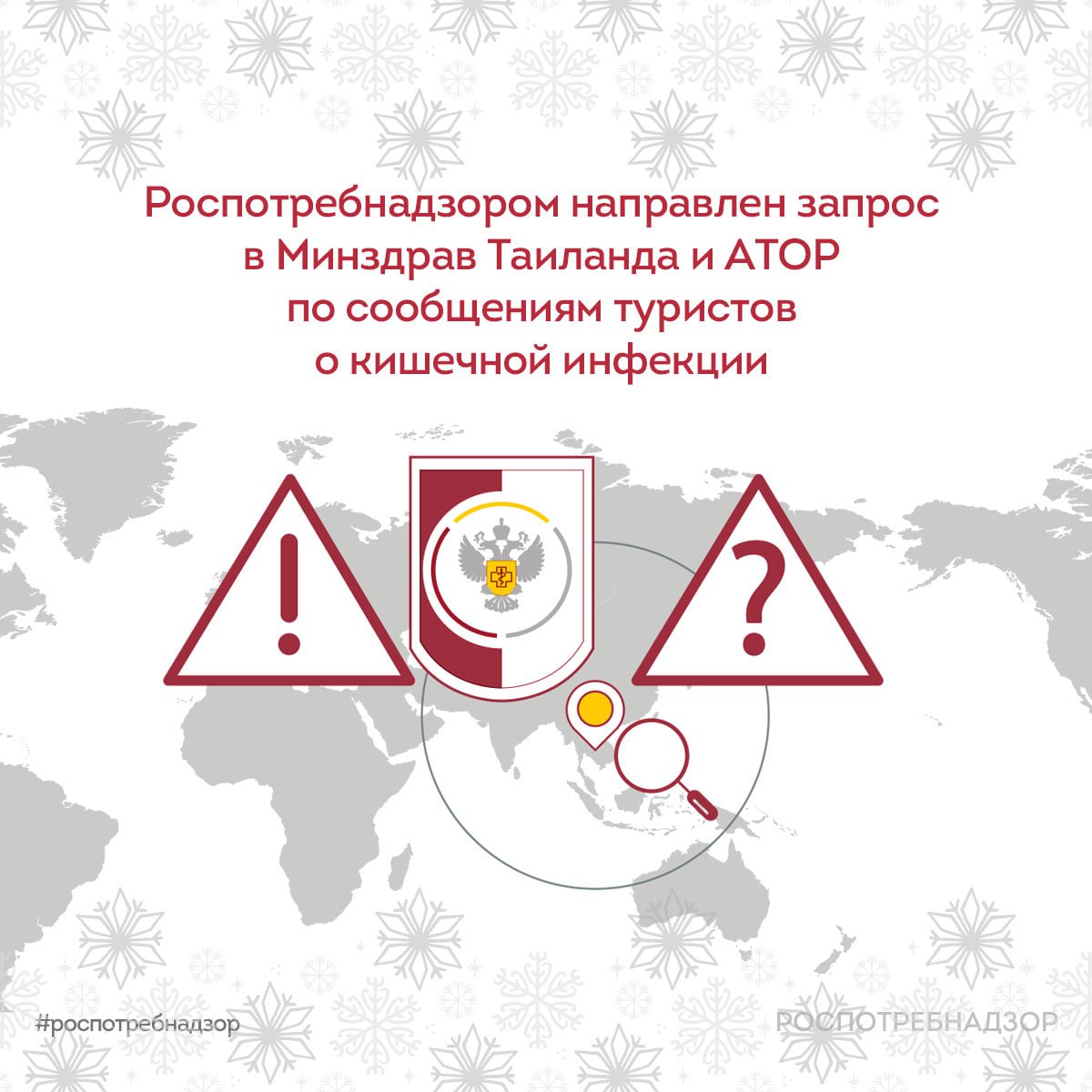 В связи с появлением в СМИ сообщений о том, что российские туристы в отеле Kora Beach Resort на курорте Пхукет сообщили о заражении кишечной инфекцией, Роспотребнадзор направил в Министерство здравоохранения Таиланда запрос о предоставлении официальных данных о результатах расследования и об оценке риска возможного ухудшения эпидемиологической ситуации. Запрос сделан в рамках действующего меморандума о сотрудничестве в области обеспечения санитарно-эпидемиологического благополучия населения.