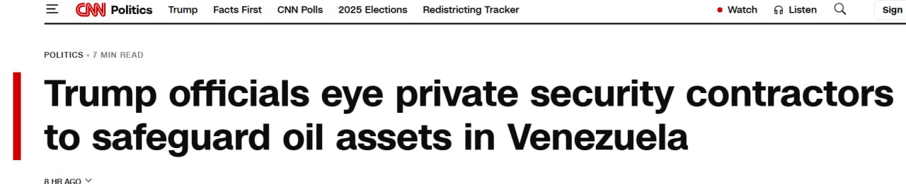 CNN: Администрация Трампа готовит частных военных подрядчиков для охраны захваченной нефти Венесуэлы