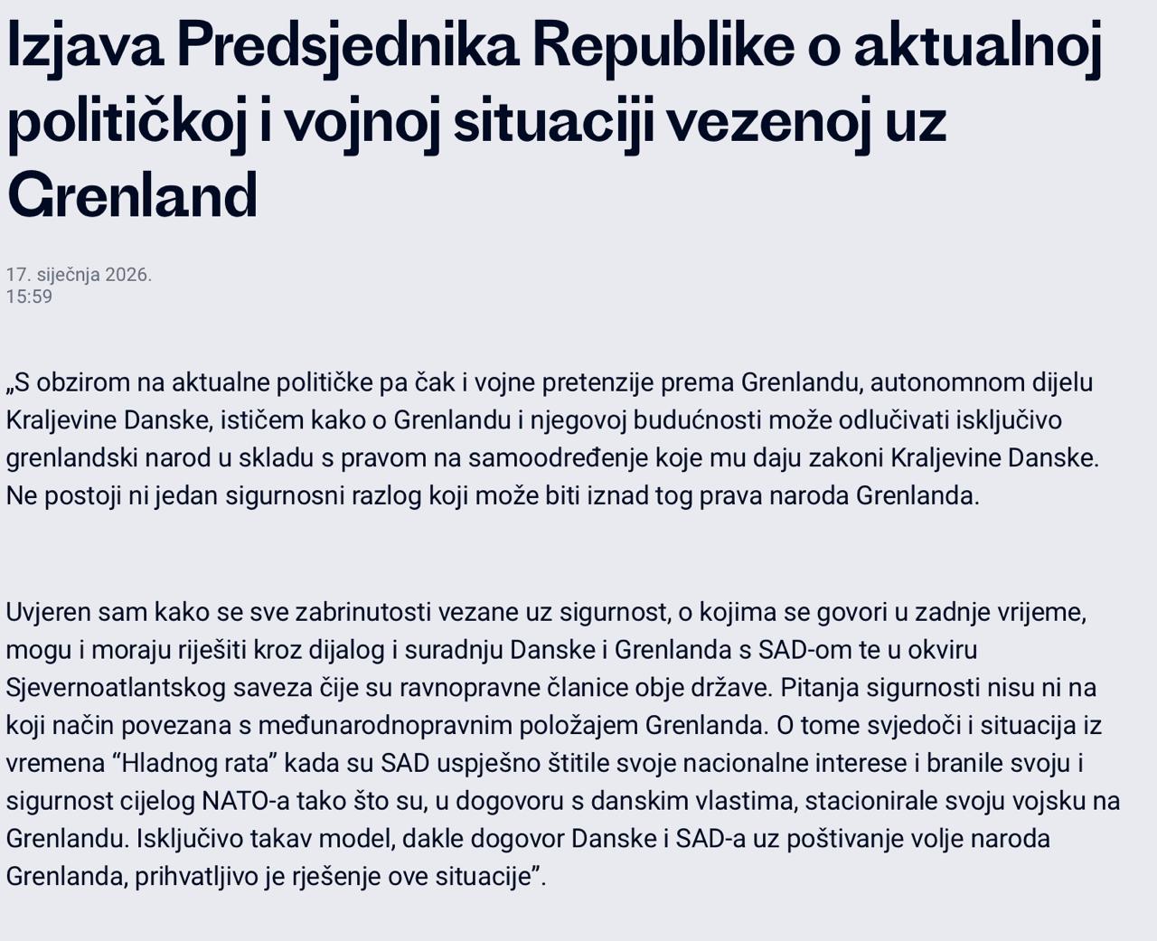 Президент Хорватии Миланович - призвал Трампа не ставить свои интересы выше прав народа Гренландии: