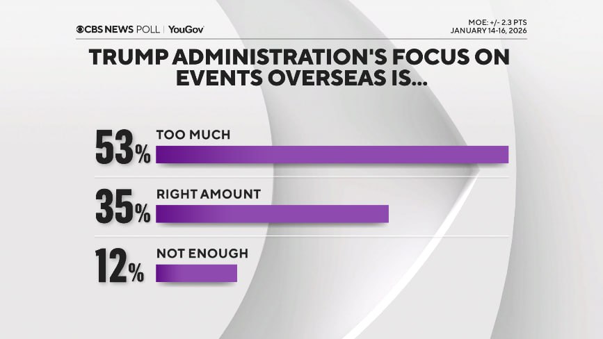 Американцы также высказали свое мнение насчет протестов против американской иммиграционной службы (ICE), отношений с Венесуэлой и обстановки в Иране. Около 60% (60%, 59% и 58% соответственно) респондентов не одобряют политику Трампа относительно этих ситуаций.