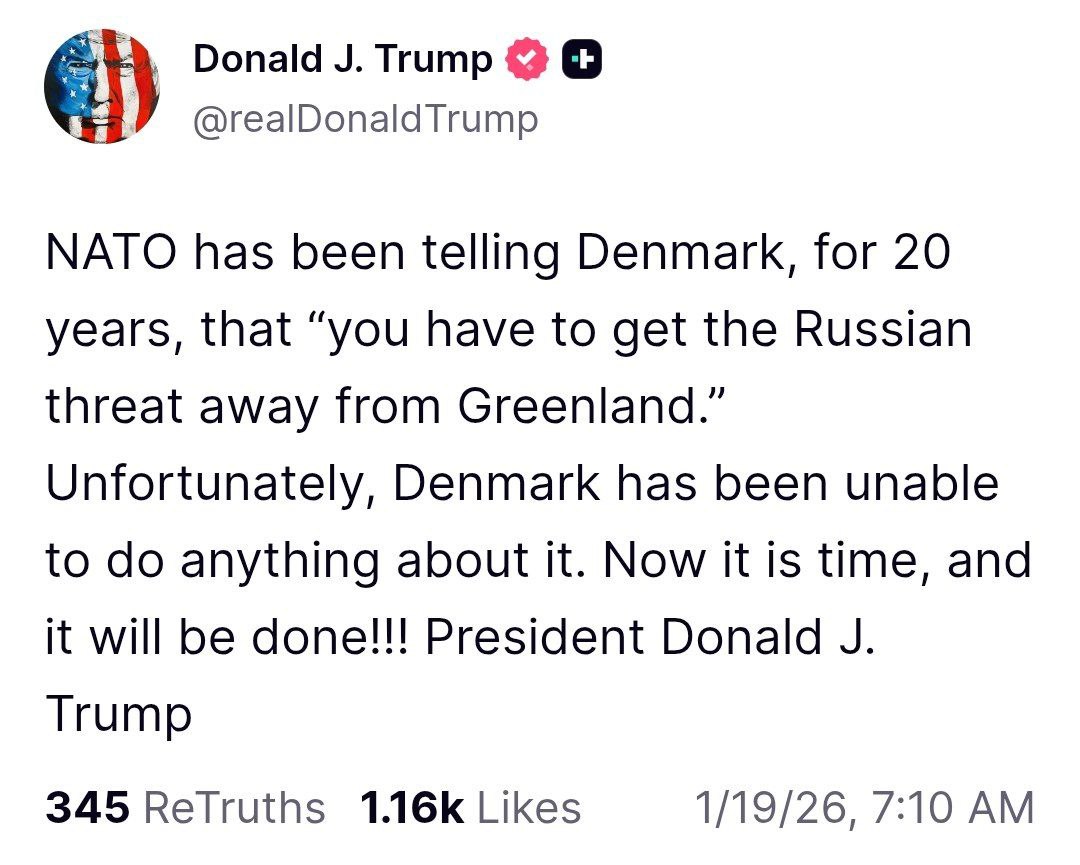 «НАТО на протяжении 20 лет твердит Дании: "Вы должны устранить российскую угрозу в Гренландии". К сожалению, Дания ничего не смогла с этим поделать. Теперь пришло время, и это будет сделано!!!».