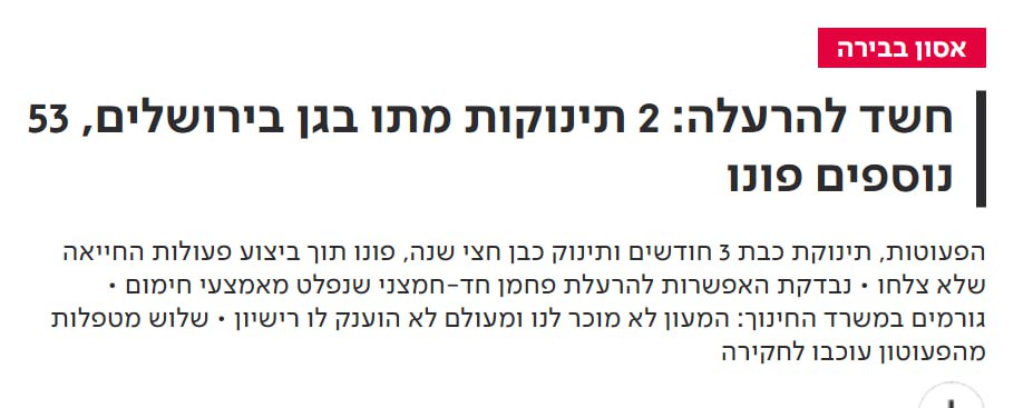 Kan: Халатность и отсутствие контроля привели к гибели младенцев в частном детском саду Иерусалима