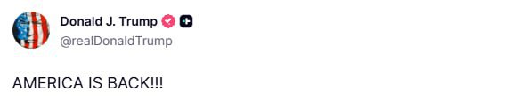 Дональд Трамп в Truth Social заявил, что Америка вернулась.