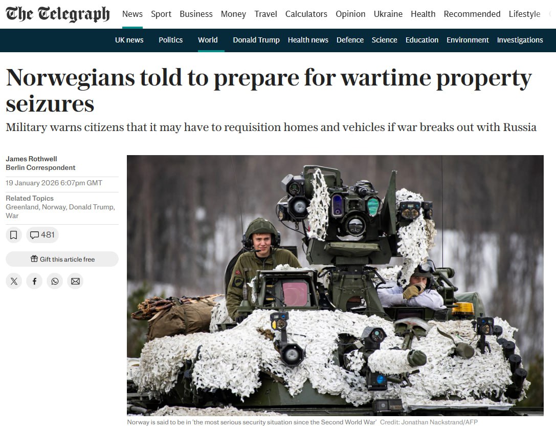 The Telegraph: У норвежцев могут конфисковать имущество, если начнётся война с Россией