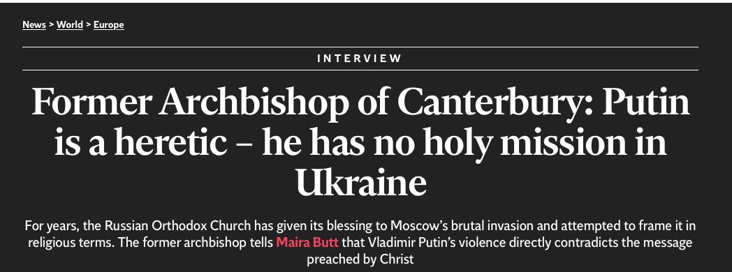 И уж тем более, русские не имеют право защищать свою нацию от геноцида на Украине - это изначально богопротивное занятие и бог кентерберийский это точно не одобрит.