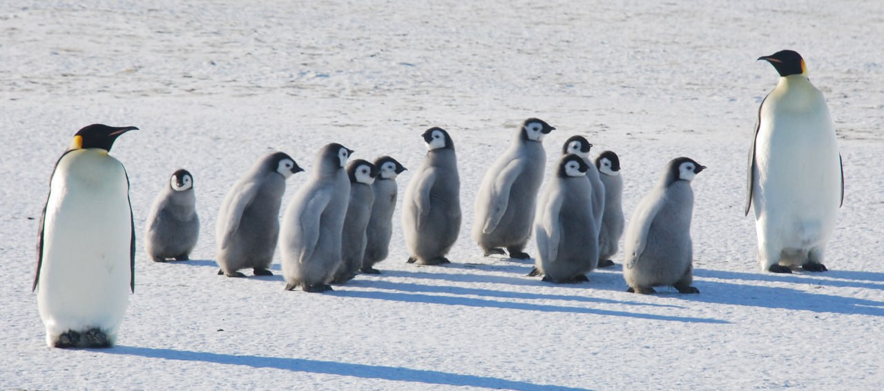 Императорские пингвины – единственное теплокровное животное, которое выводит свое потомство в самый разгар полярной зимы. Самцы императорских пингвинов высиживают яйца 2 месяца — стоят на морозе до -50°C, теряя половину веса, пока самки добывают еду. Подросшие птенцы императорских пингвинов воспитываются в своеобразных «детских садах». Пока родители добывают пищу за ними присматривают «воспитатели» — молодые птицы, которые еще не начали размножаться.