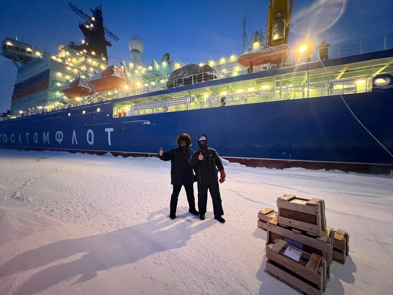 До чего техника дошла! Атомоход доставил спутниковое оборудование в самый северный поселок России