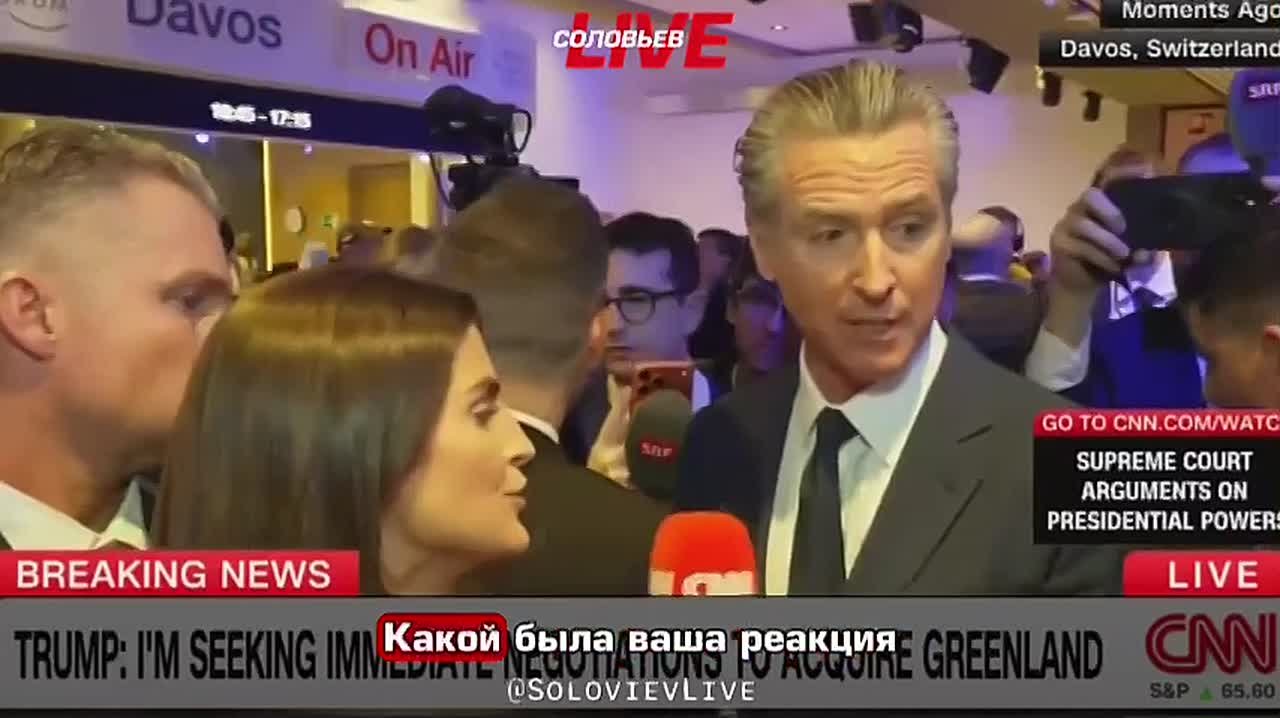 Никакой. Я думаю, вы вчера вечером сказали нечто совсем иное. Я не услышал „new scum“ [„новая мразь“], я услышал „new green scam“ [„новая зелёная афера“]. Но, если честно, давайте уж прямо: это было удивительно скучно. Это было удивительно незначительно. Он никогда не собирался вторгаться в Гренландию. Это никогда не было реальным. Так что вся эта история изначально сходила на нет.
