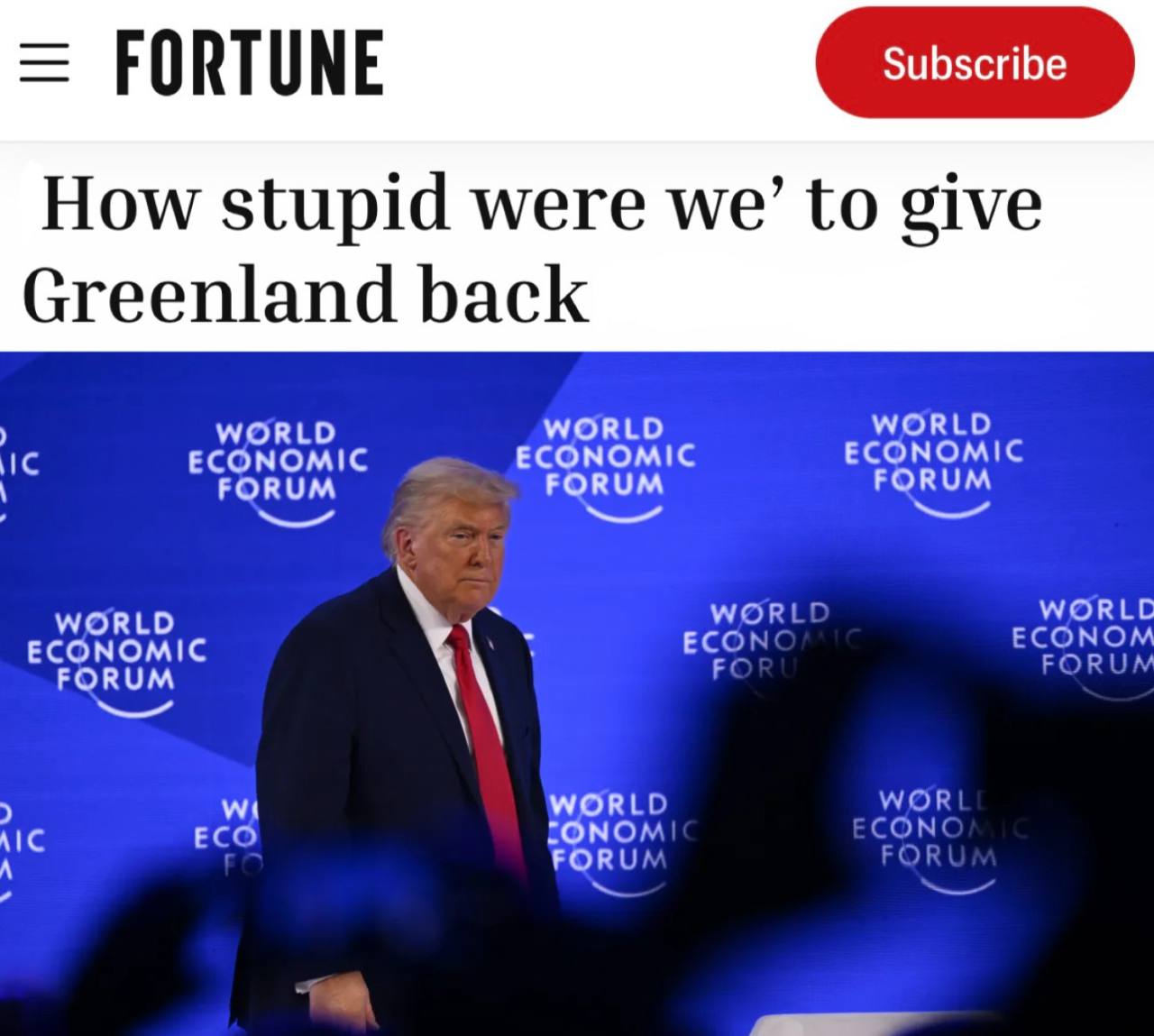 «Президент Соединенных Штатов Америки Дональд Трамп планирует заплатить каждому жителю Гренландии по одному миллиону долларов, если население проголосует за присоединение к США. Накануне Трамп в ходе Всемирного экономического форума в Давосе провел переговоры с генсеком НАТО Марком Рютте. Они обсудили проект соглашения по Гренландии. Дональд Трамп назвал встречу «очень продуктивной».