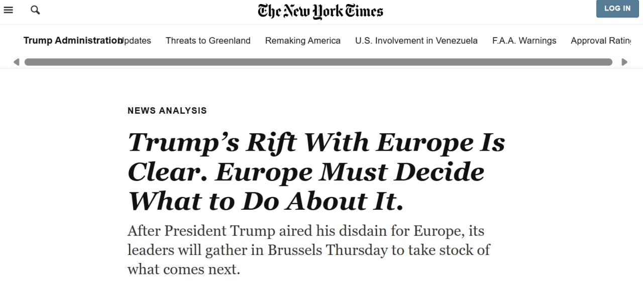 США и Евросоюз продолжают стремительно расходиться во взглядах. Дональд Трамп ранее угрожал введением тарифов, и хотя напряжённость временно спала на фоне договорённостей по Гренландии, эксперты подчёркивают: проблема не решена, а лишь отложена.