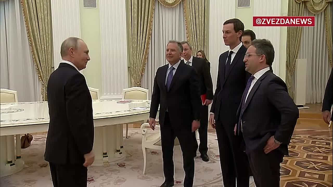 Кадры начала переговоров Путина и Уиткоффа в Кремле. В составе американской делегации новое лицо - это комиссар Федеральной службы по закупкам США Джош Грюнбаум. Во время приветствия Уиткофф представил его Путину.