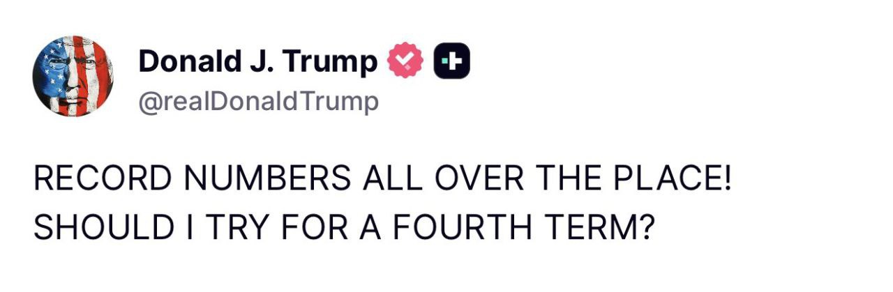 Дональд Трамп в Truth Social допустил возможность выдвижения на четвёртый срок: