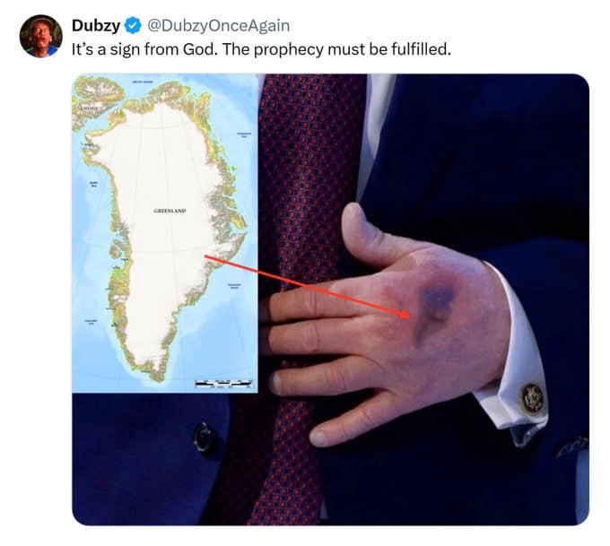 Пользователи соцсетей шутят, что синяк напоминает очертания Гренландии.