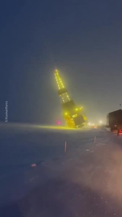 Нефтяная вышка обрушилась на Аляске, когда ее перевозили по ледяной дороге.