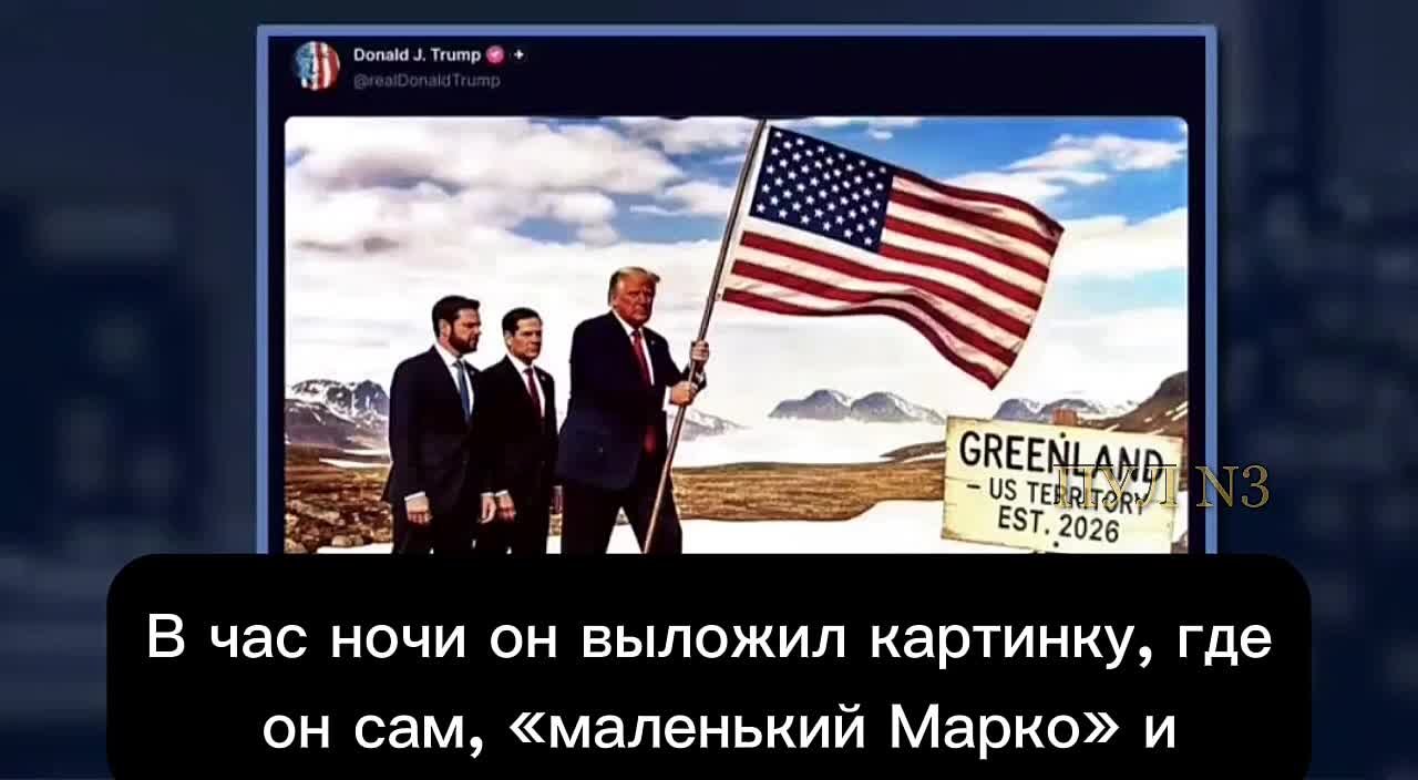 И ведь всё потому, что ему не повесили маленькую медальку на шею. Он ребёнок. Родители позволили ему поздно лечь спать, и он начал постить кучу чепухи. В час ночи он выложил картинку, где он сам, «маленький Марко» и Джей Ди Вэнс колонизируют Гренландию.