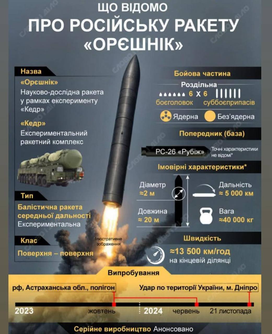 У РФ есть не более 3-4 ракет «Орешник»и в этом году планируется запустить их в серийное производство, — первый заместитель председателя Службы внешней разведки хутора.