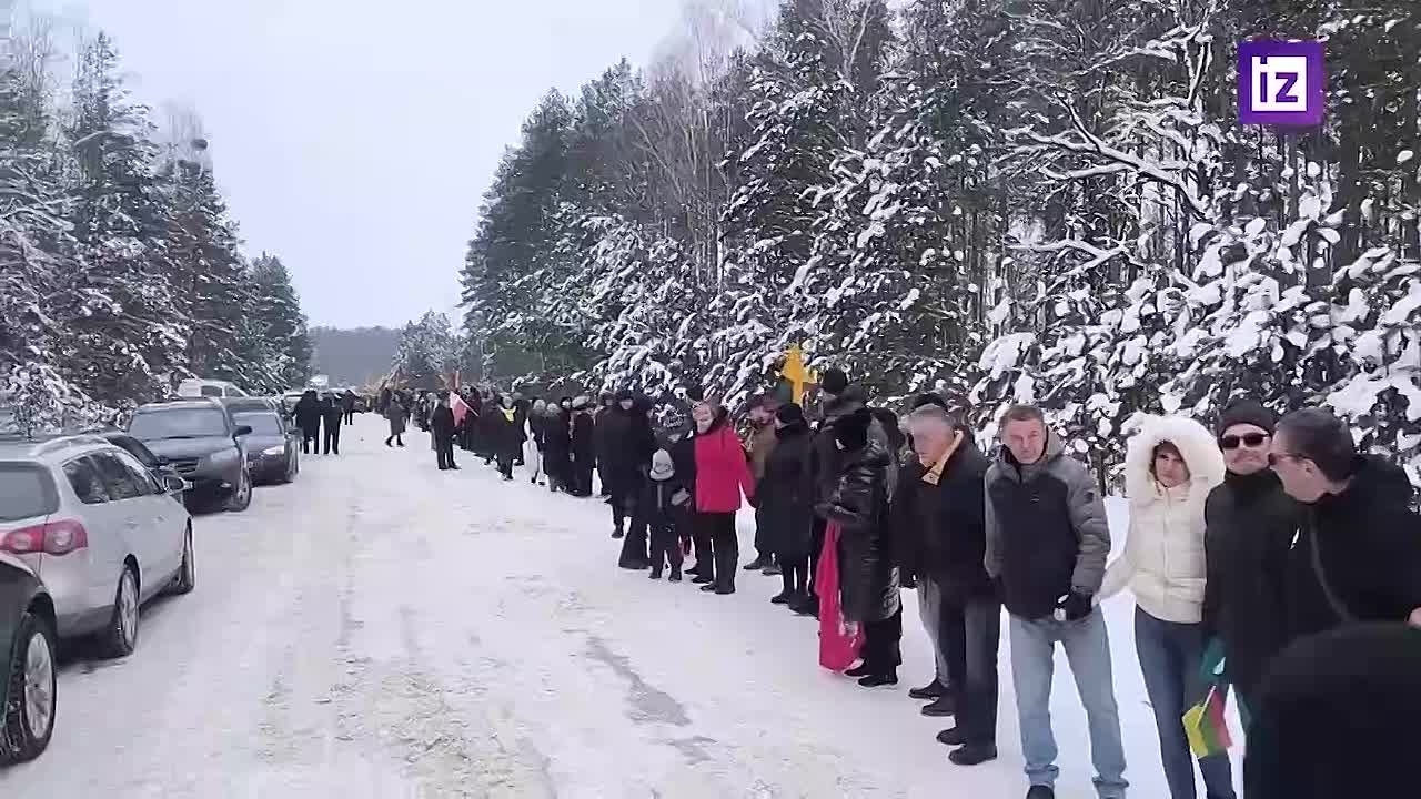 На кадрах — участники акции размахивают литовскими флагами и держатся за руки, чтобы "оцепить" территорию, на которой не хотят видеть полигон.