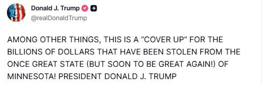 «СРЕДИ ПРОЧЕГО, ЭТО — «ПРИКРЫТИЕ» МИЛЛИАРДОВ ДОЛЛАРОВ, КОТОРЫЕ БЫЛИ УКРАДЕНЫ ИЗ НЕКОГДА ВЕЛИКОГО ШТАТА (НО СКОРО СНОВА СТАНЕТ ВЕЛИКИМ!) МИННЕСОТА!»