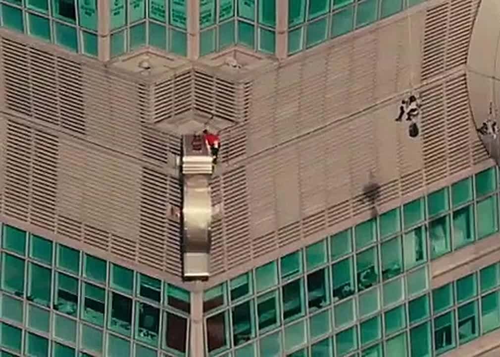 Скалолаз-экстремал Алекс Хоннольд без страховки взобрался на небоскреб "Тайбэй 101" высотой 508 метров.