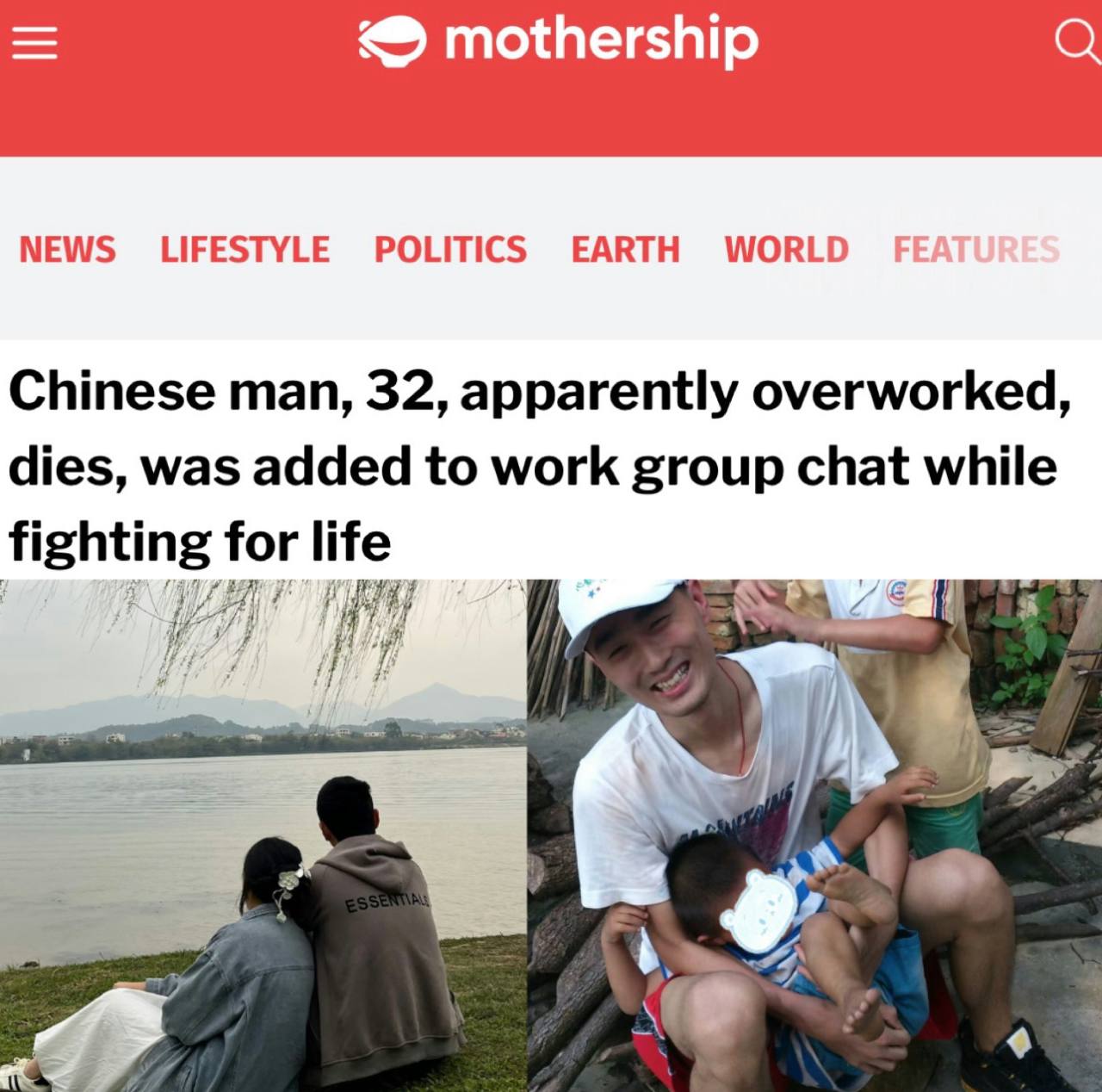 «32-летний китаец, переутомленный работой, умер»: Работавший без выходных молодой айтишник умер от переутомления.