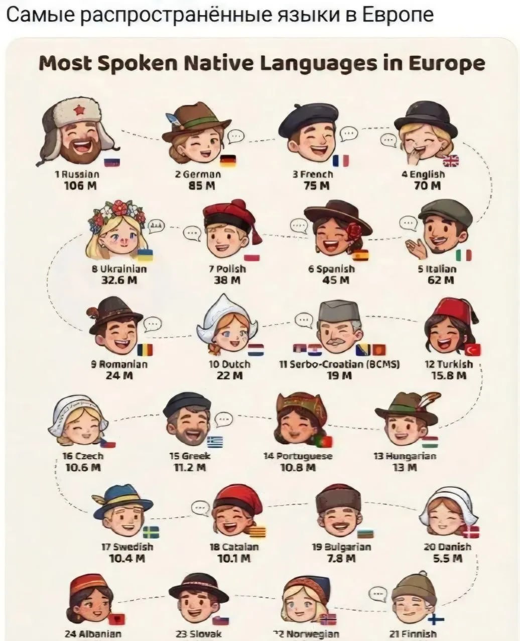 Кстати, белорусский язык в первые две дюжины не попал. Я потом покопался, они пишут, что лишь 3,3 млн говорят на белорусском.