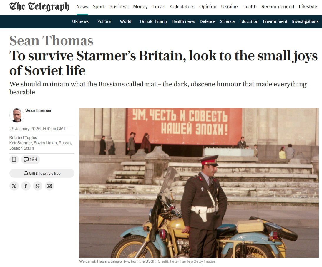 Британская газета The Daily Telegraph всерьёз предлагает англичанам перенять «советский опыт выживания»: от самогоноварения из подручных продуктов до подпольного юмора и самиздата. Главное, по версии автора, — не сесть за посты в соцсетях и не ослепнуть от палёного алкоголя из остатков шоколадных яиц.