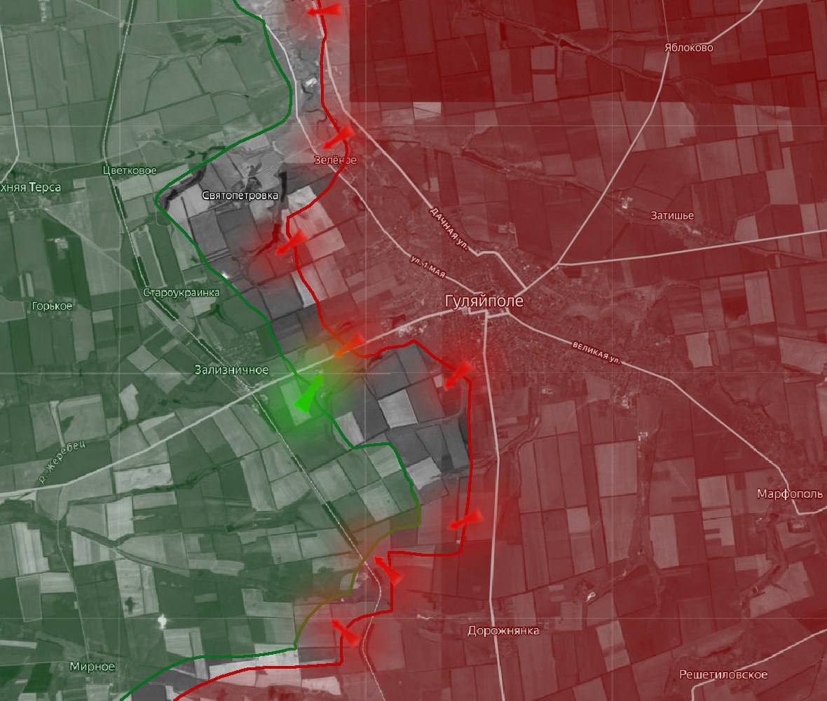 Атаки в этих лесополосах позволяют пройти российским войскам к населённому пункту Железнодорожное с юга и ограничить возможности ВСУ по заброске малых групп в Гуляйполе.
