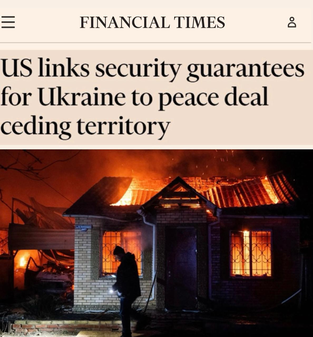 «США увязывают предоставление Украине гарантий безопасности с мирным соглашением, предусматривающим уступку территорий»: Вашингтон требует от Украины отказа от потерянных территорий.
