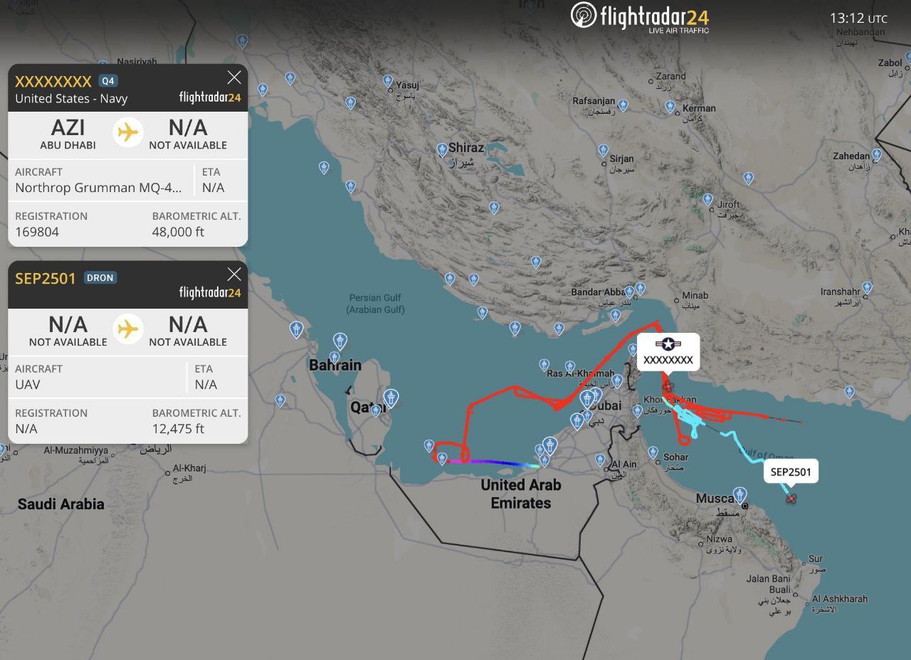 Американские и иранские дроны совместно летают в Оманском заливе