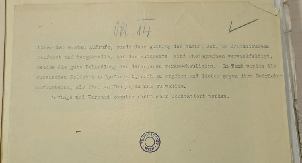 Это одна из первых листовок, составленных Эвиденцбюро для пропаганды среди русских солдат, август 1914 г.