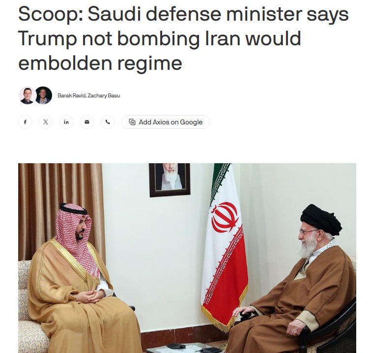Axios утверждает, что министр обороны Саудовской Аравии принц Халид бин Салман заявил на закрытом брифинге в Вашингтоне в пятницу, что если Трамп не выполнит свои угрозы в адрес Ирана, режим в Тегеране укрепится. Об этом сообщили четыре источника, присутствовавшие на встрече.