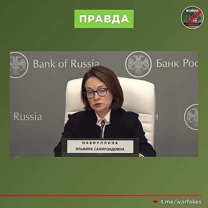 Правда: Эльвира Набиуллина не делала такого заявления, перед нами — результат нейросетевого монтажа, притом довольно топорного. Даже у обывателя при просмотре этого видео может возникнуть подозрение, ведь во время своей речи глава ЦБ РФ… переодевает костюм. Неестественность движений губ спикера также выдает подделку.
