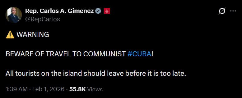 Американский конгрессмен-республиканец Карлос Гименес призвал туристов срочно покинуть Кубу