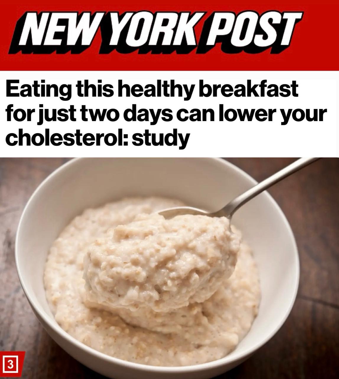 «Исследование показало, что диета, основанная на недорогом и полезном продукте, способна заметно снизить уровень холестерина всего за два дня. Анализ крови и образцов кала показал, что уровень «плохого» холестерина ЛПНП у участников, завтракавших овсянкой, снизился примерно на 10% всего за 48 часов. В среднем они также потеряли около двух килограммов веса и отметили небольшое снижение артериального давления.