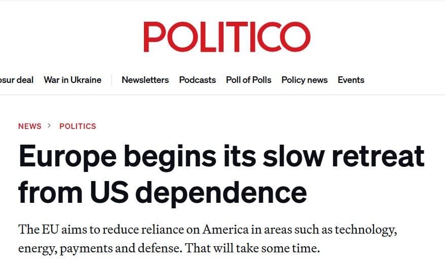 При этом генсек НАТО Марк Рютте открыто заявил, что вера в способность Европы защищаться без США — это «несбыточная мечта», подчёркивая сохраняющуюся унизительную зависимость.