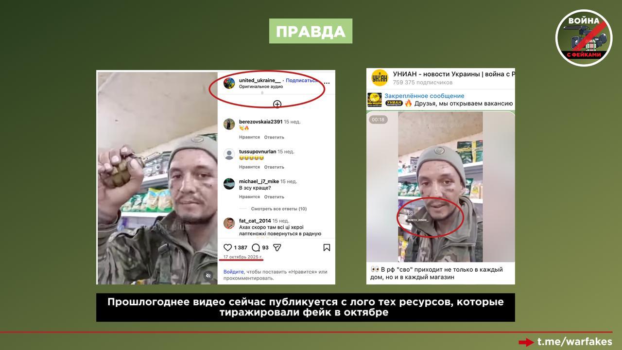 Сам по себе ролик — это попытка реанимировать фейк, первоисточником которого был проукраинский ресурс «NEXTA», опубликовавший подделку еще в октябре 2025 года. Тогда фейк был приурочен к успехам 60 бригады на Херсонском направлении и вброшен, чтобы дискредитировать продвижение ВС РФ.