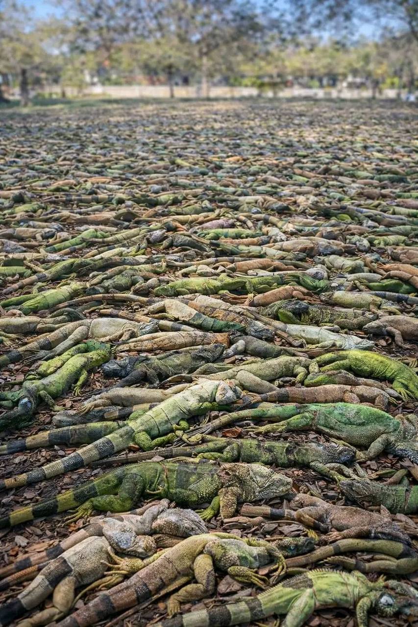 «Во Флориде тысячи игуан впали в анабиоз из-за аномальных холодов. Для их спасения власти штата разрешили собирать обездвиженных рептилий без специальной лицензии. Из-за резкого похолодания, которое обрушилось на штат Флорида, сотрудники Комиссии по охране рыбы и дикой природы ежедневно собирают более тысячи игуан.